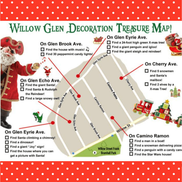 After we enjoying pizza and beer (no host), we’ll walk through the decorated streets of Willow Glen, starting at Round Table of Willow Glen and ending at Willow Street Frank Bramhall Park, Willow Street, San Jose.