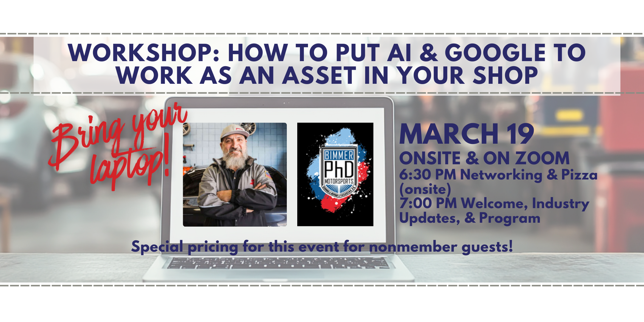 Tim will demonstrate how to use AI and Google tools to improve operations, marketing, communication, and overall shop efficiency in your shop. This is a working session — BRING YOUR LAPTOP and be ready to follow along, collaborate, and build your skillset learning about these practical tools you can begin using right away in your own shop.